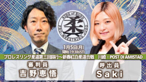 「プロレスリング柔道第三回興行〜新春紅白柔道合戦」 日時:1月5日(月)FC先行入場19:00 開場19:10 開始19:30 会場:川崎・POST DI AMISTAD 住所:神奈川県川崎市幸区中幸町3-16-1(1階) 交通:JR川崎駅...