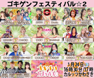 ゴキゲンフェスティバルはゴキゲンプロレスとは異なる提供試合と対抗戦による大会です。