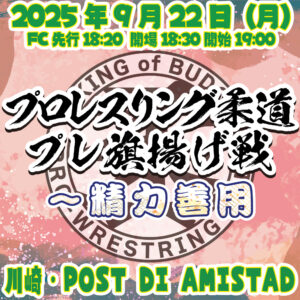 「プロレスリング柔道プレ旗揚げ戦〜精力善用」 9月22日(月)川崎・POST DI AMISTAD 19時 18:10 当日券発売 18:30 ファンクラブ先行入場 ※会員証をご提示ください 18:40 開場 19:00 前説、入場式、試合...