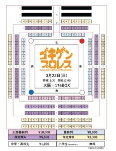 料金:正面最前列(お土産付き)11,000円、最前列席(お土産付き)8,800円、指定席A 5,500円、指定席B 3,300円、中高生指定席A 1,000円、小学生以下無料